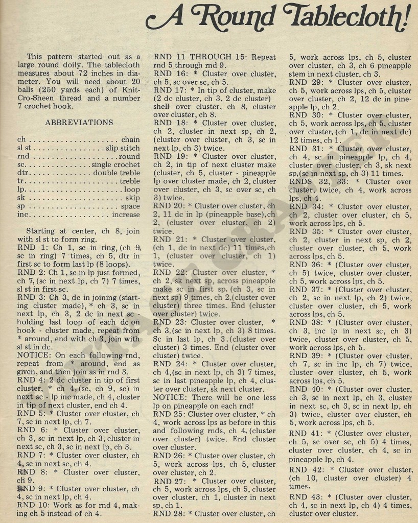 Crochet Pineapple Round Table Cloth